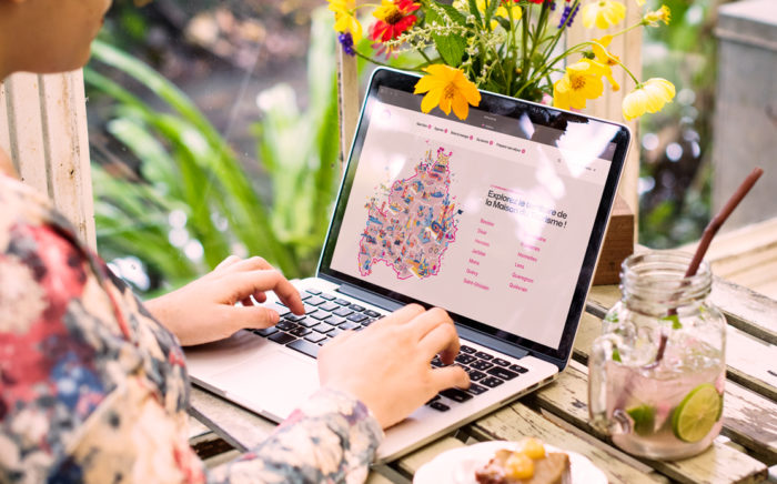 Sur le site officiel de VisitMons, la carte prend vie grâce à l’interaction. Les illustrations guident le regard, invitent au clic et donnent envie de découvrir le territoire sur le terrain.